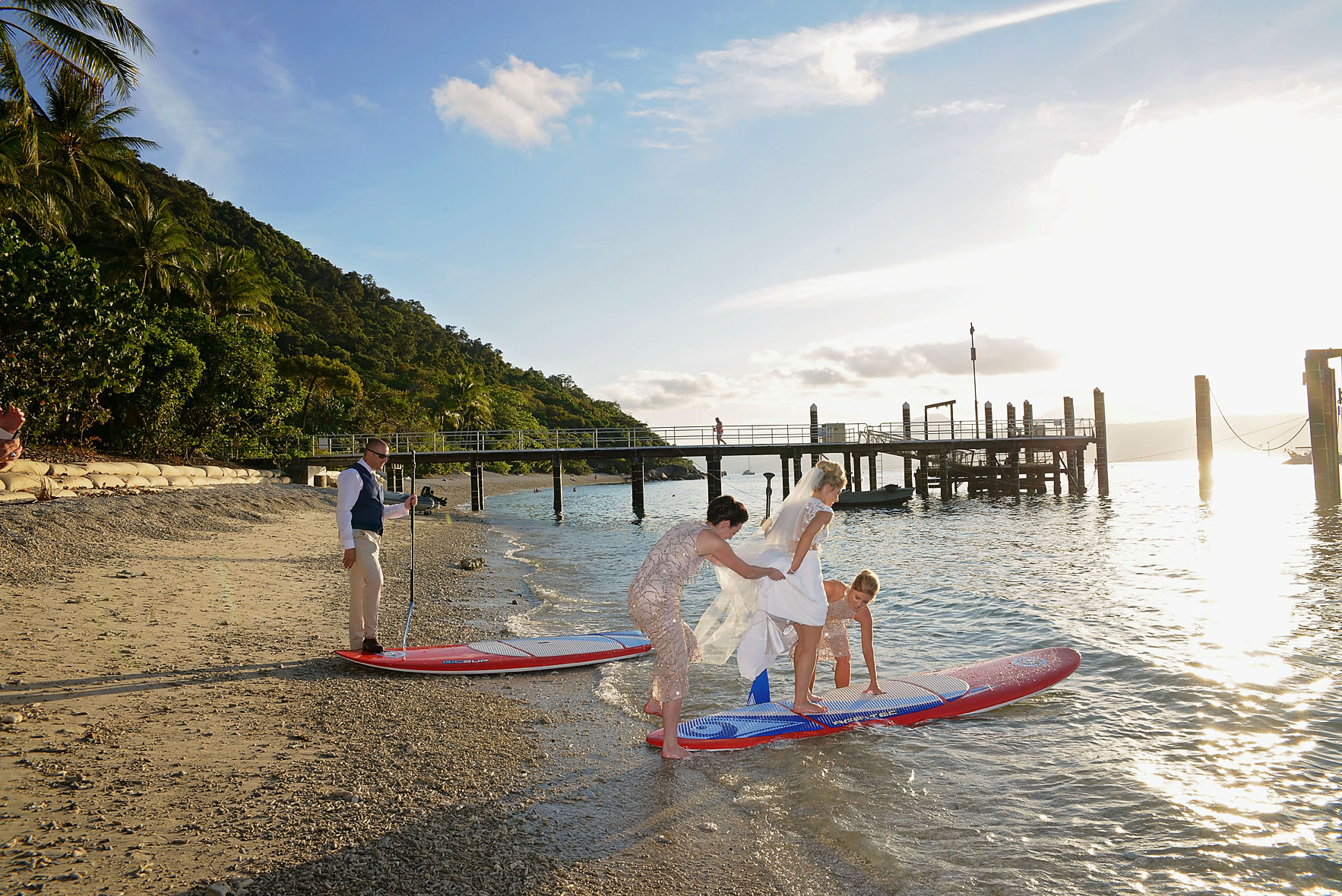 Nothing beats a sunny Queensland wedding – unless it’s also on an island with the best people in the world!! I was so privileged to have been asked to photograph three of these beauties on their wedding days… this particular wedding was quite unique – it’s not everyday your bride insists on paddle boarding, then falls in!!! We had so many laughs at this beach wedding.